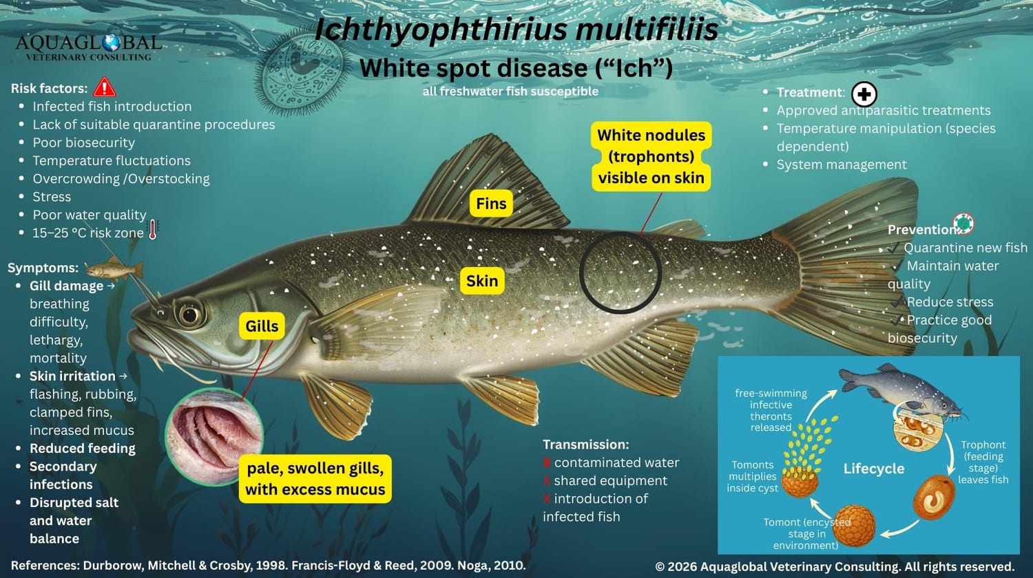 Because the parasite has a complex lifecycle involving both the fish and the surrounding environment, outbreaks can develop quickly if early signs are not recognised.